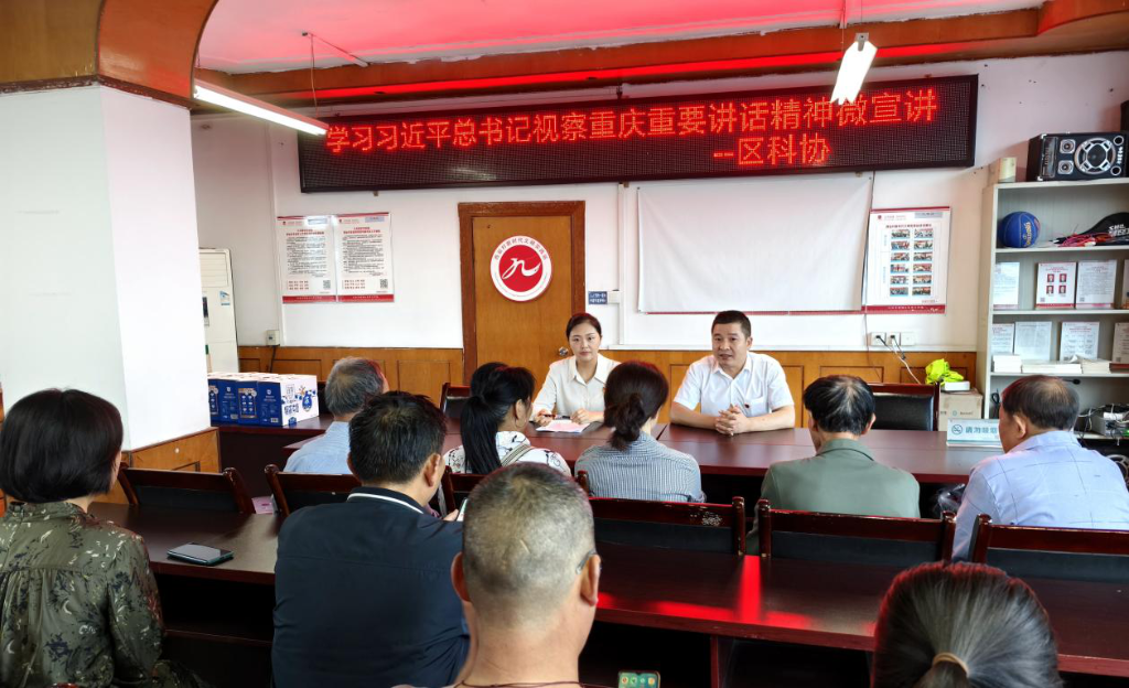 在“七一”到来之际,九龙坡区科协党支部组织党员围绕习近平总书记视察重庆重要讲话重要指示精神和市委六届五次全会、区委十三届七次全会开展专题学习,并组建区科协微宣讲队伍,深入基层开展宣讲。6月28日,在华岩镇西站村社区开启了微宣讲的首场活动。