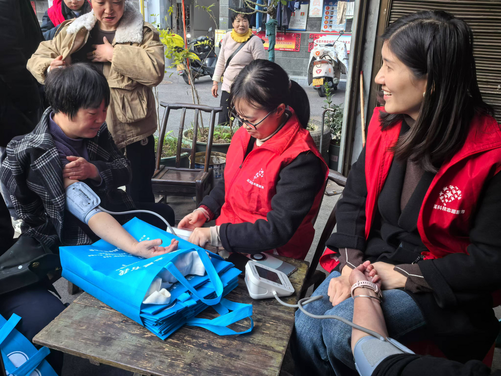 活动现场,志愿者们针对寒冷天气下如何增强免疫力、呵护呼吸道、保护心脑血管健康等常见问题,向社区居民普及了在冬季适用的日常保健知识。宣讲结束后,有专业医疗背景的志愿者为大家免费测量了血压,并耐心解释测量结果,询问其生活和就医情况,给出相应的保健建议。同时,志愿者们还建议居民们利用小区内现有的健身器材和场地,开展日常文化娱乐、体育健身等活动。