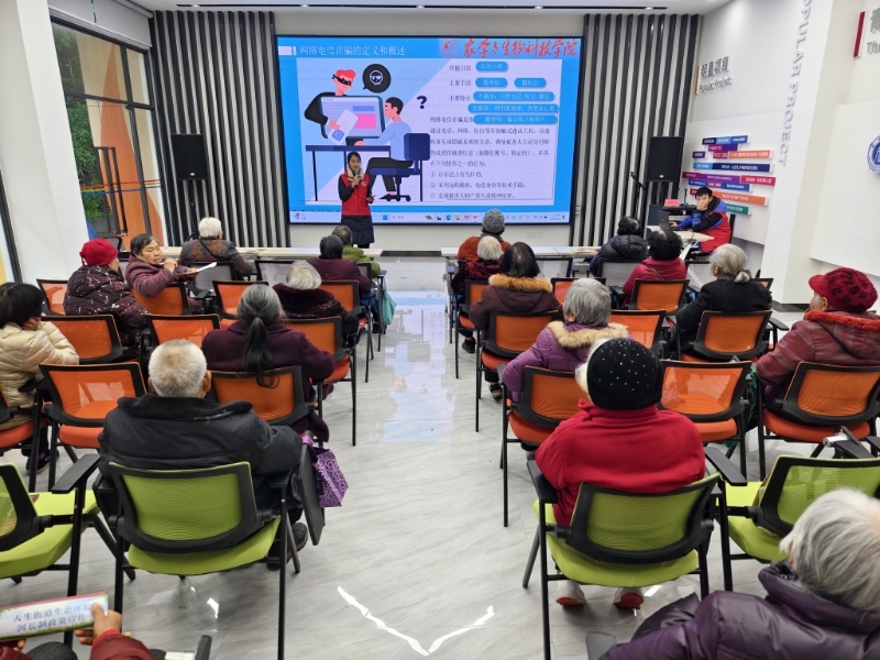 活动中,西南大学农学与生物科技学院的学生们化身科技志愿者,为社区居民带来了反诈骗知识讲座。讲座伊始,志愿者们详细阐述了诈骗的定义及种类,让居民们对诈骗行为有了清晰地认识,并深刻了解到诈骗可能带来的严重后果。